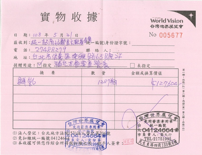 需要捐款收據:請至ibon機台選擇購物寄貨進入門市預購,輸入搜尋碼25674958,依照操作指示輸入數量、捐款者資訊後,列印繳費單,持繳費單至門市櫃台結帳,取得發票即完成認捐。